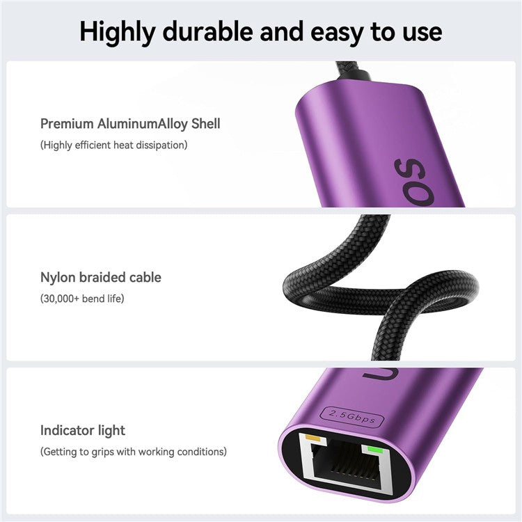 UOEOS USB 3.1 Type-C to Ethernet Adapter 2.5G High Speed RJ45 Wired Network Converter - Purple