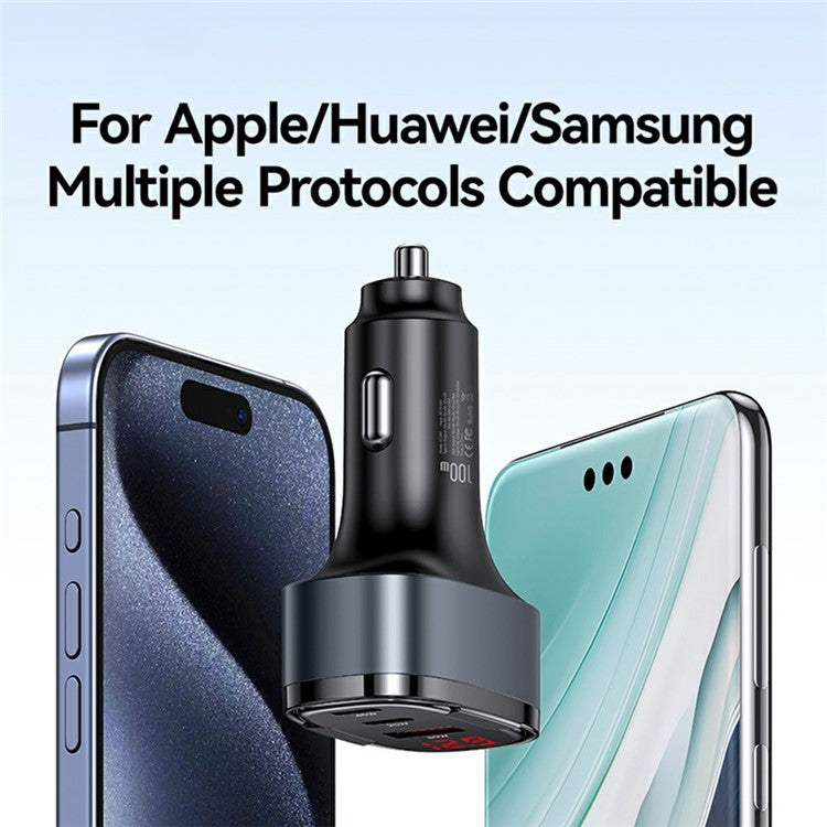 USAMS CC257 C42 100W Type-C + USB + iP Three Ports Aluminum Alloy Fast Car Charger