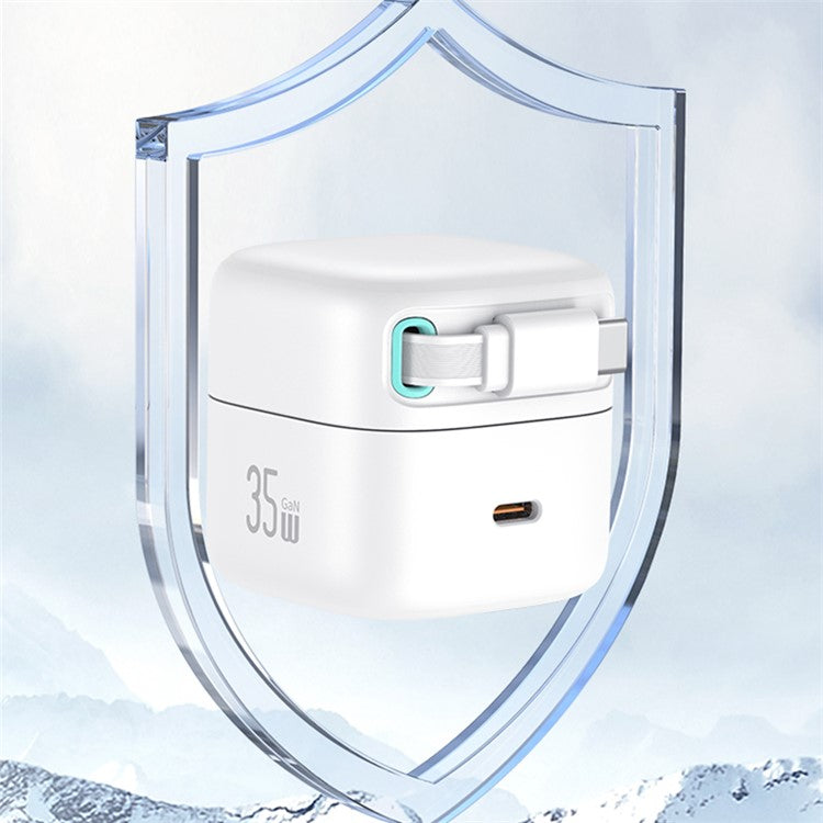 USAMS US-CC205 PD 35W GaN Fast Charger Dual USB-C Port Power Adapter with Magnetic Retractable Type-C Cable - Black / CN Standard Plug