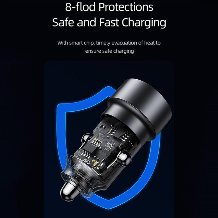 USAMS US-CC208 C39 60W USB+Type-C Fast Charge Adapter PC+Aluminum Alloy Transparent Car Charger - Black