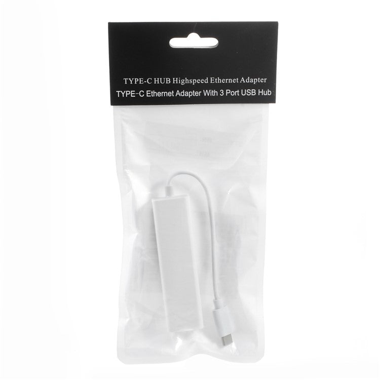 USB 3.1 Type C to 3-Port USB 2.0 Hub with Gigabyte Ethernet Adapter for Apple New MacBook 12-inch - White