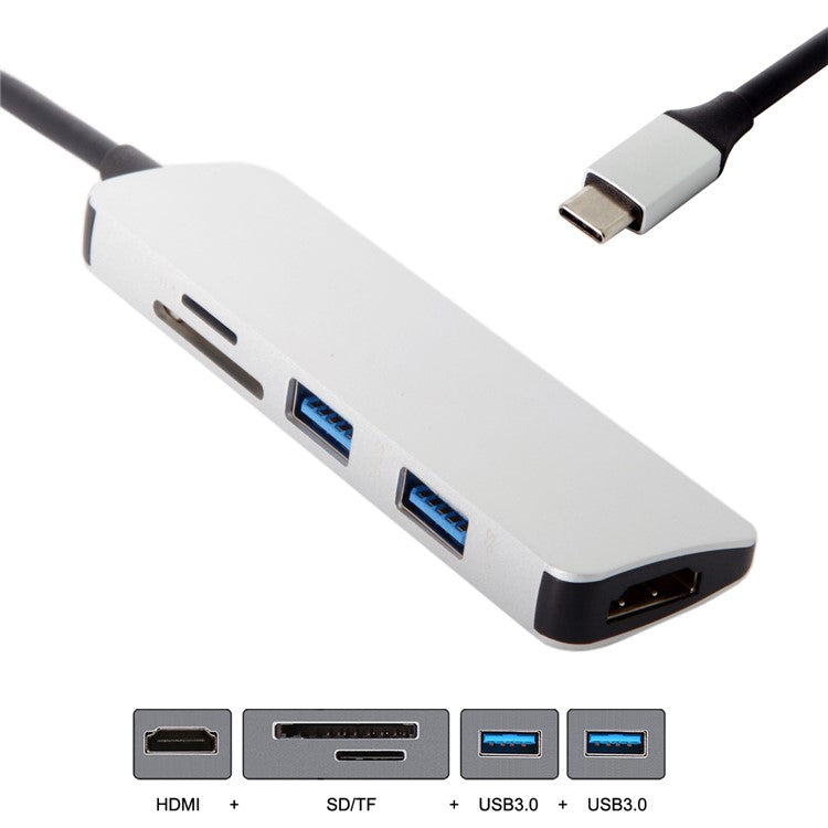 USB 3.1 Type-C to HDMI + Dual Ports USB3.0 + SD/TF Card Reader Hub Adapter for MacBook