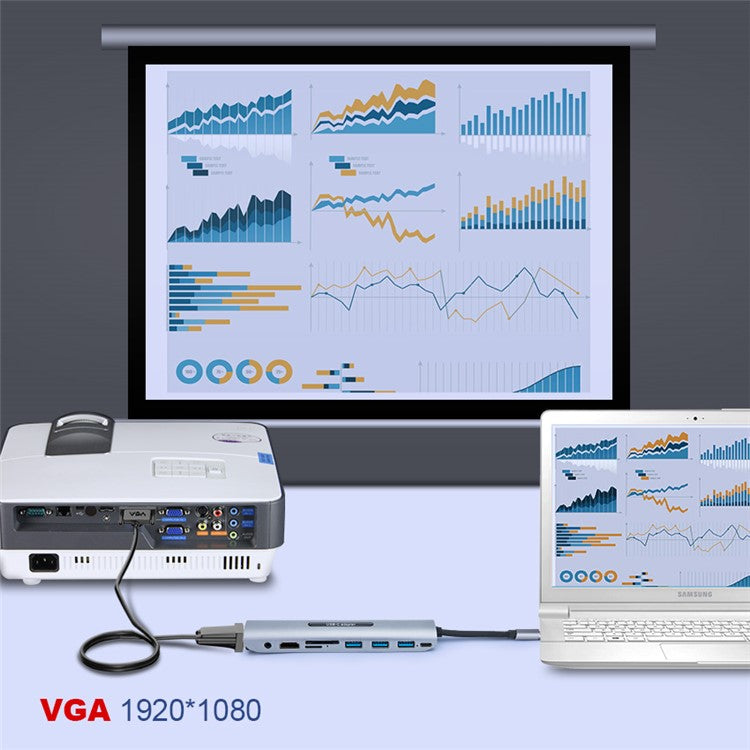 Thunderbolt 3 dock Type-c to HDMI 4K VGA USB3.0 Hub TF SD Slot USB-C PD with Audio Portable 9 in 1 Adapter for Macbook Projector.