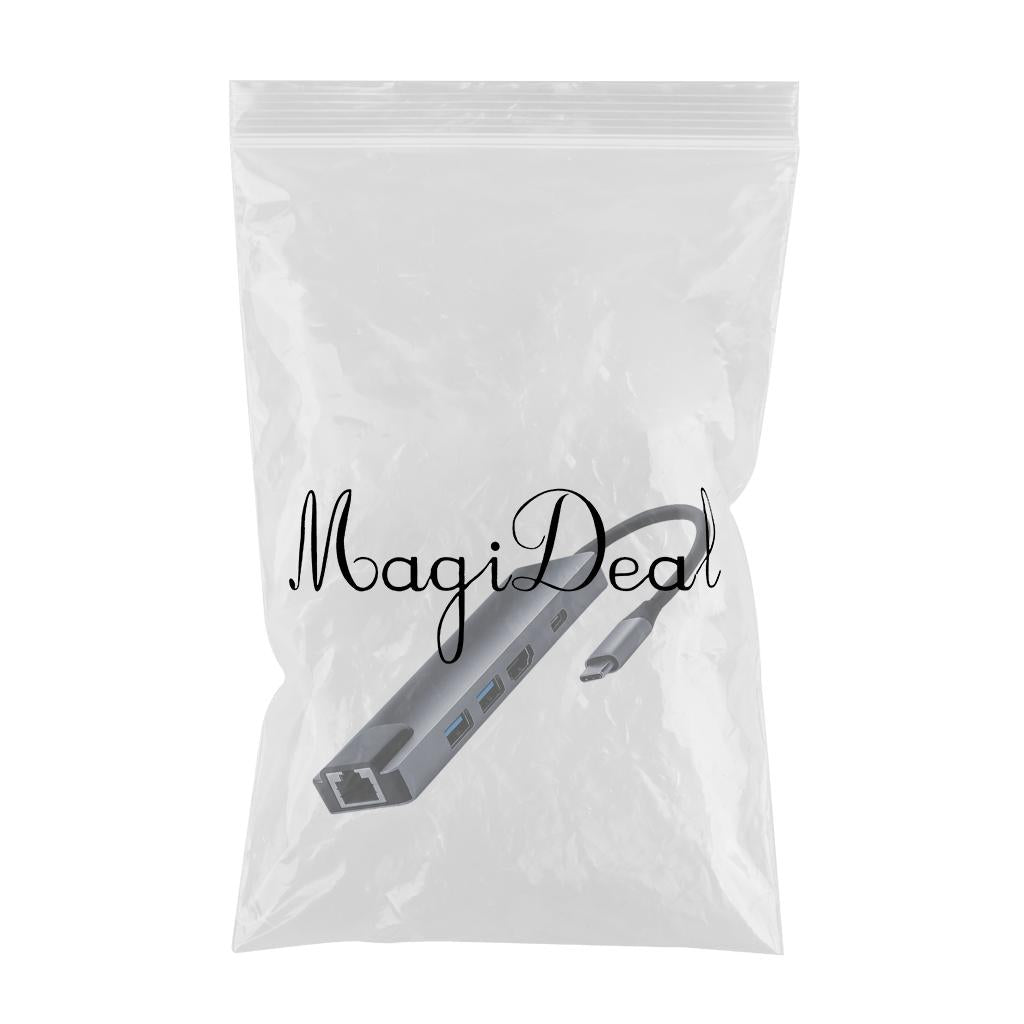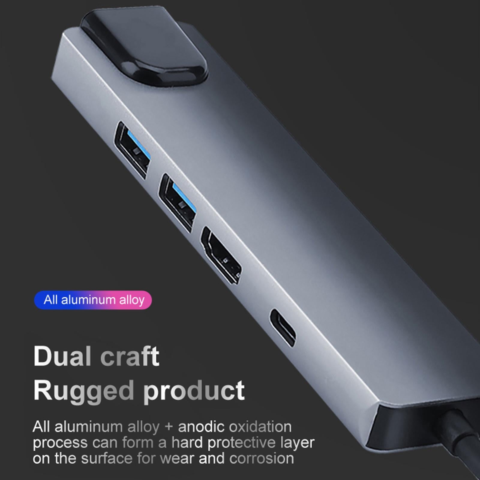 5-in-1 Docking Station contains 1x USB 3.0, 1x USB 2.0. 1x PD Charge, 1x 100M Ethernet Port