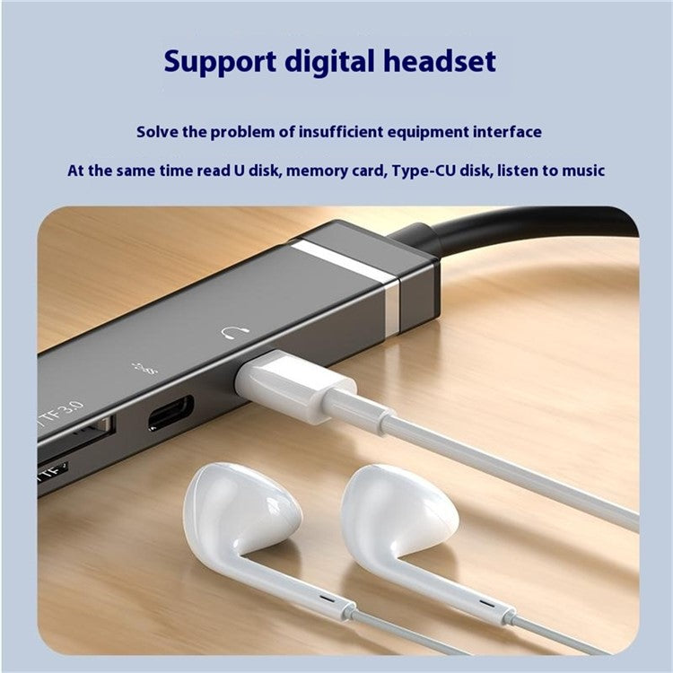 USB + Type-C 6-in-1 Hub Smartphones Tablets Computers Multi-Port Adapter OTG Card Reader - Grey