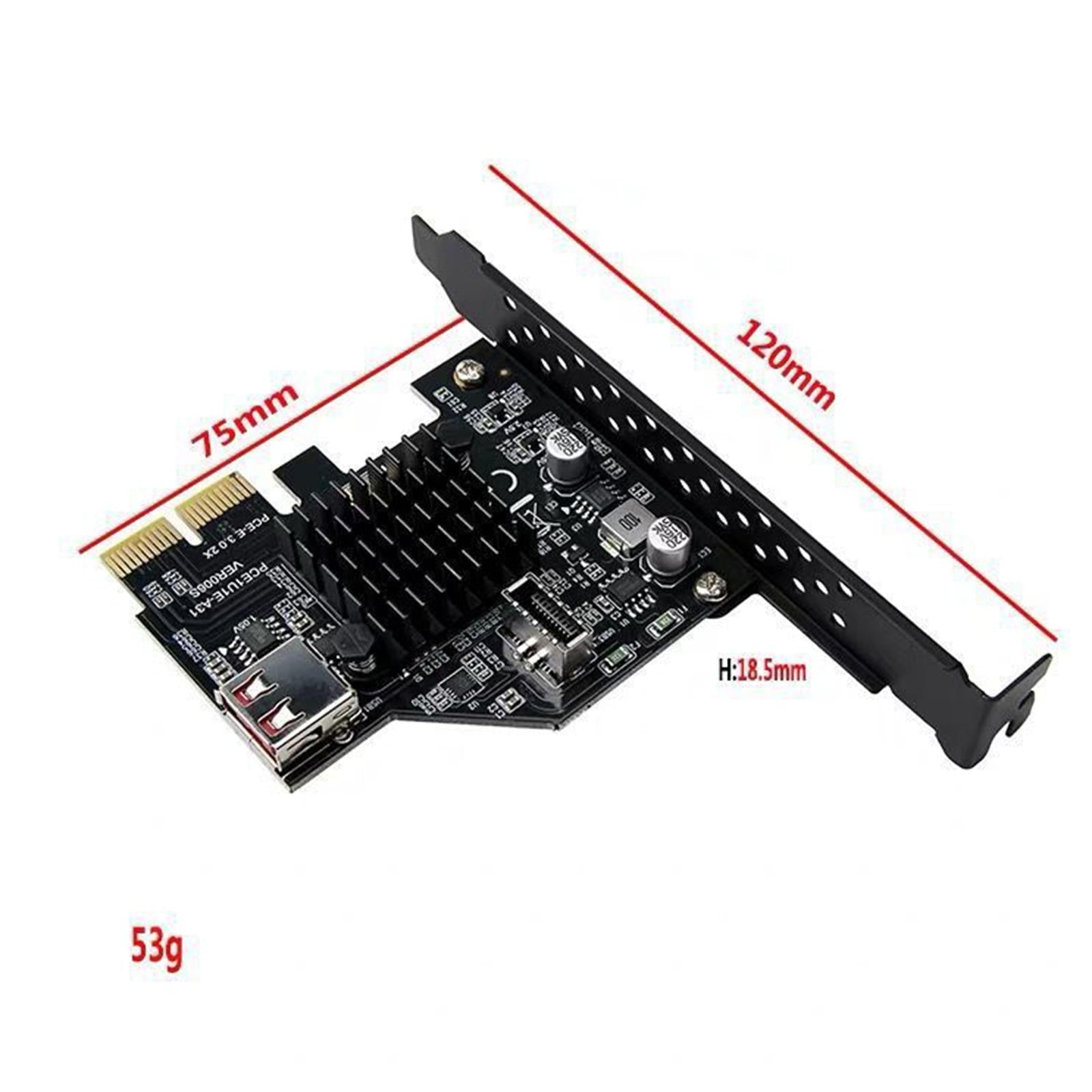 This expansion card supports for data transfer up to 10Gbps, which is a necessity for external drives, and is perfect for file backups, video editing, and data recovery. The size is only 120x75x18.5mm, easy to install and use.