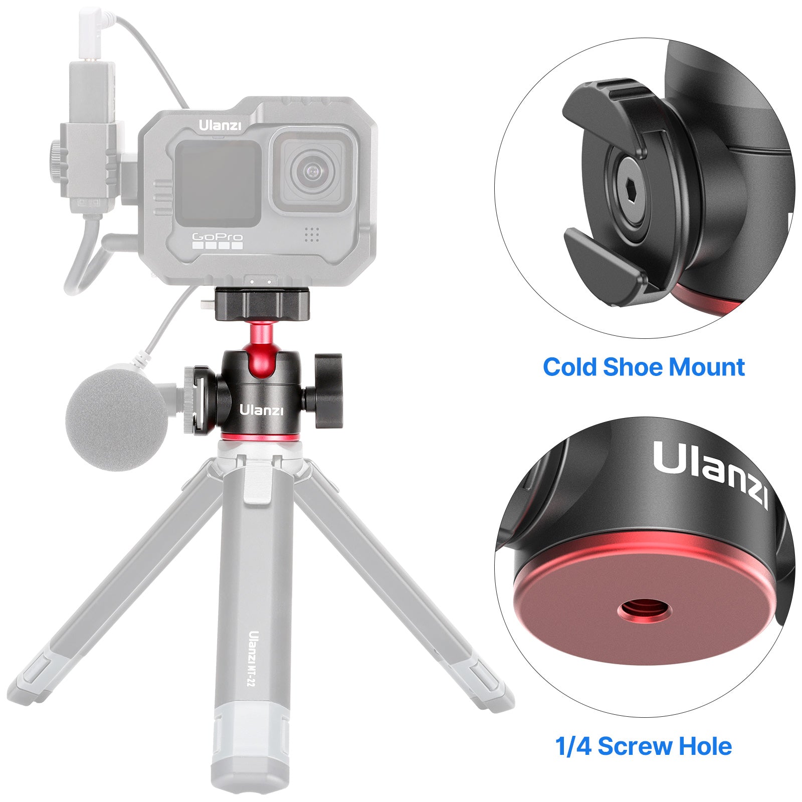 Unique Cold Shoe Design: Patented rotatable cold shoe on ball head design makes microphone and LED light mounting accessible, more practical when use
