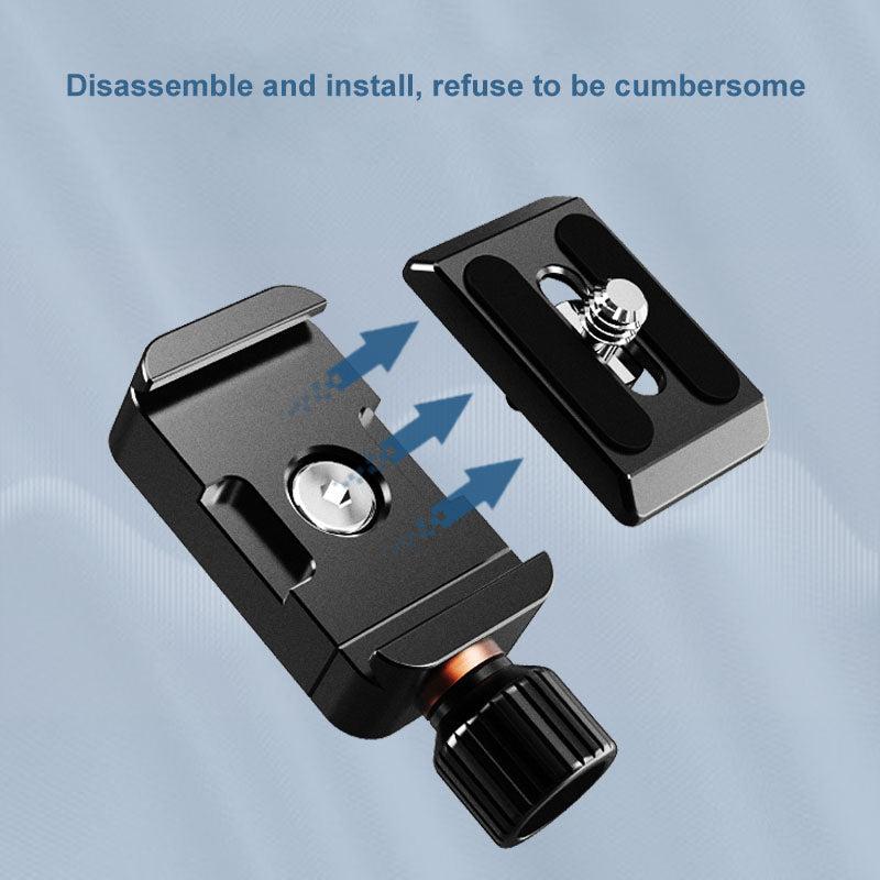 - A quick-mount folding tripod, 360-degree universal adjustable head