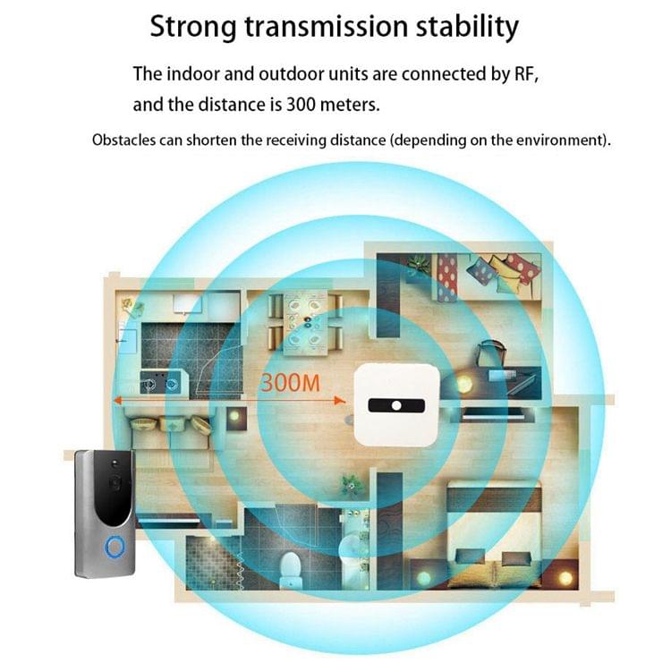4. Two-Way Audio with Noise Cancelling - Allows you to talk to your visitors wherever you are. And you can watch real-time videos on cellphone.