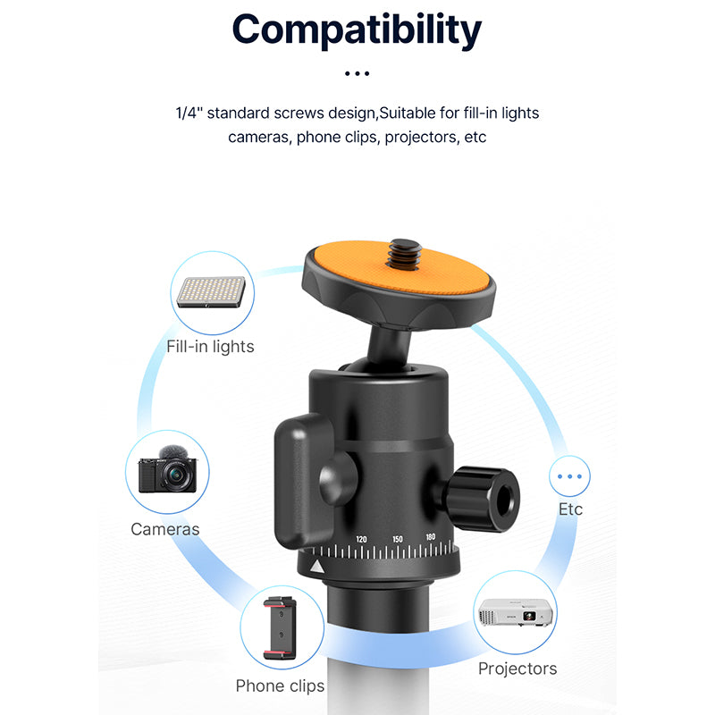 - Compatibility: 1/4" standard screws design, suitable for fill-in lights, cameras, phone clips, projectors, etc.