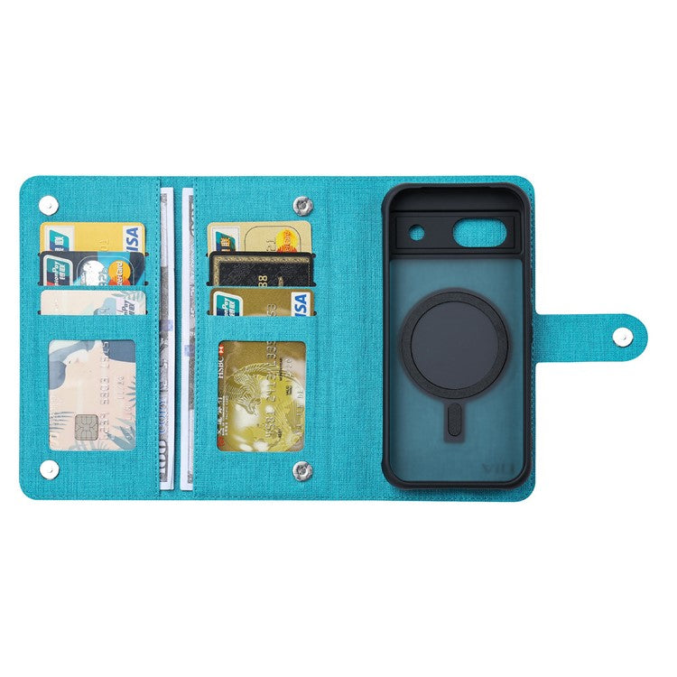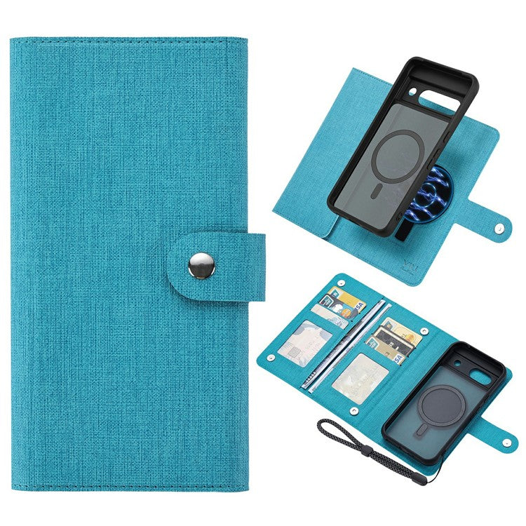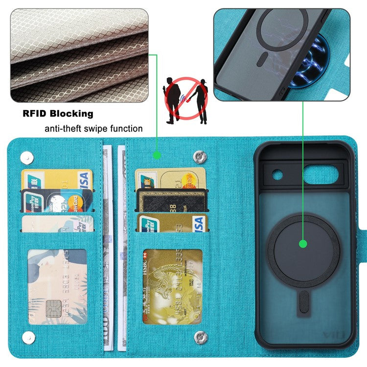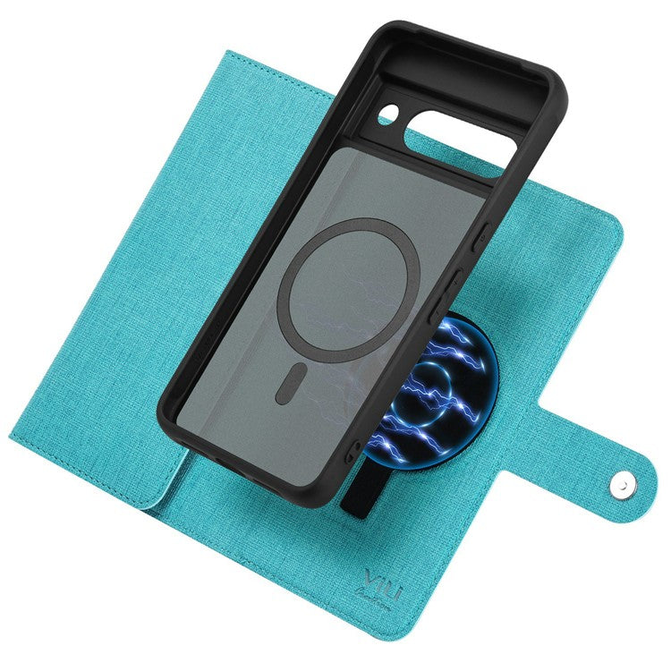 VILI GMA Series For Google Pixel 8a Magnetic Case RFID Blocking Wallet Detachable Leather Phone Cover - Blue