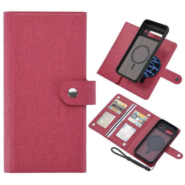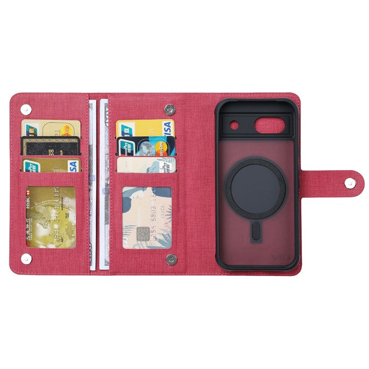 VILI GMA Series For Google Pixel 8a Magnetic Case RFID Blocking Wallet Detachable Leather Phone Cover - Rose