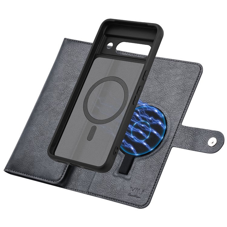 VILI GVA Series for Google Pixel 8a Magnetic Case Detachable PU Leather Wallet Phone Cover - Black