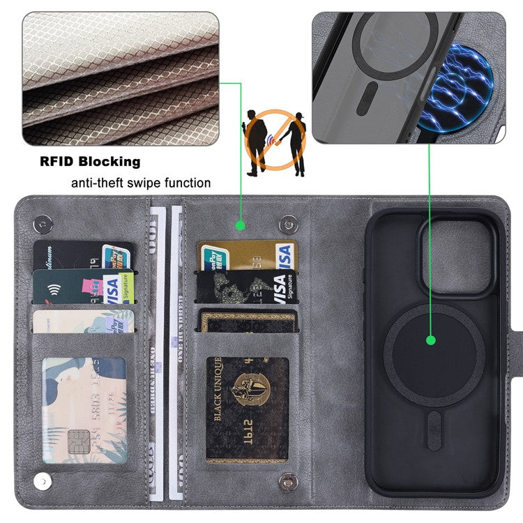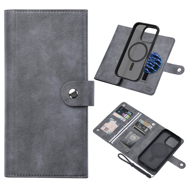 VILI GVA Series for iPhone 16 Pro Magnetic Phone Case Leather Cover Detachable 2-in-1 - Grey