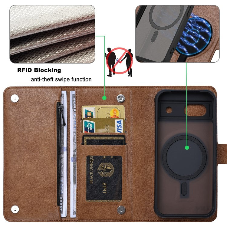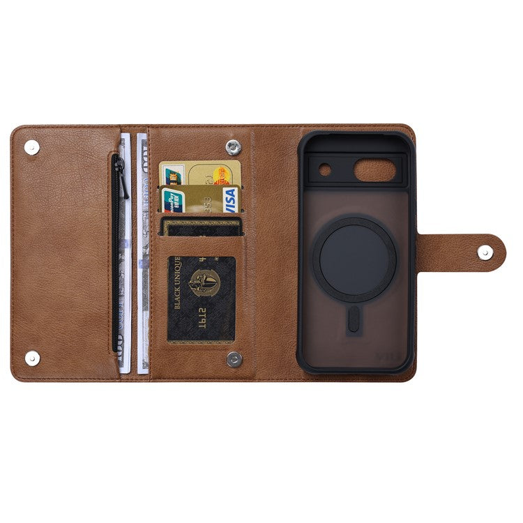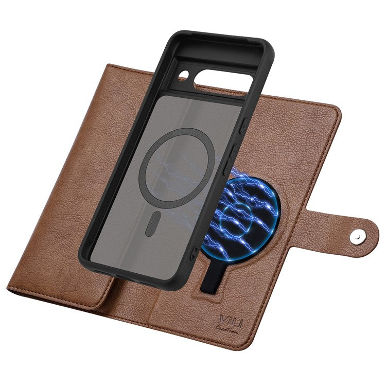 VILI GVB Series for Google Pixel 8a Case Wallet Leather Phone Cover 2 in 1 Detachable - Brown