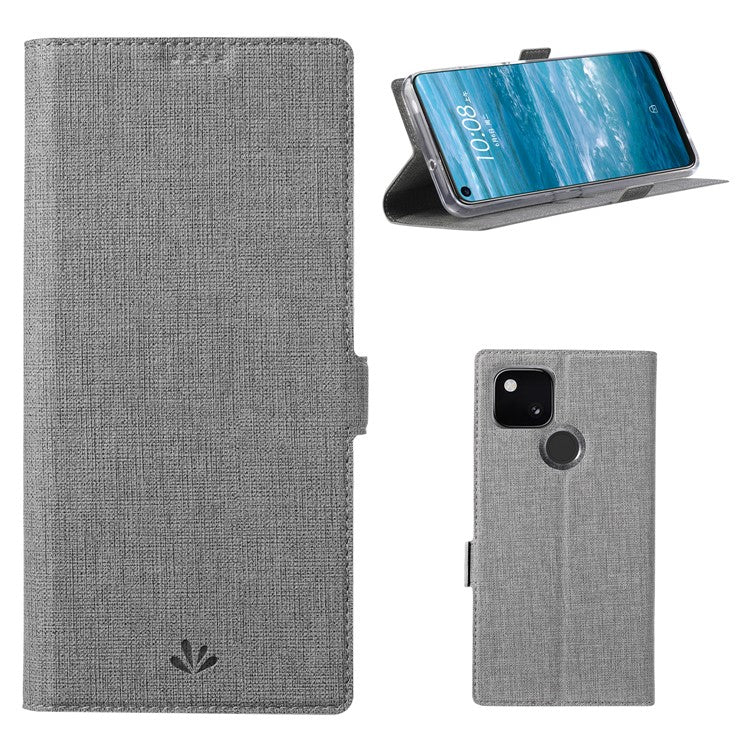 VILI K Series Cross Texture Leather Phone Wallet Stand Cover Case for Google Pixel 4a 5G - Grey