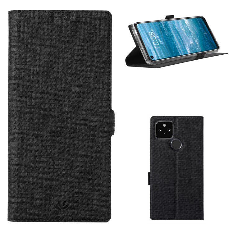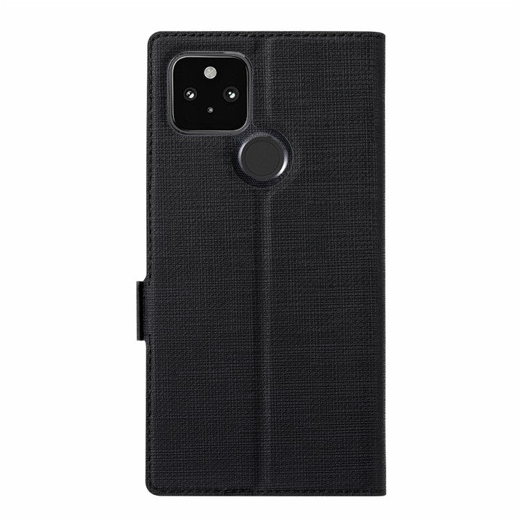 VILI K Series Cross Texture Leather Phone Wallet Stand Cover Case for Google Pixel 5 - Black