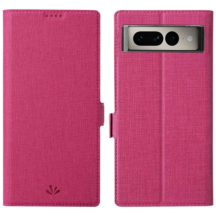 VILI K Series PU Leather Stand Case for Google Pixel 7 Pro 5G, Double Magnetic Clasp Full Protection Phone Wallet Cover - Rose