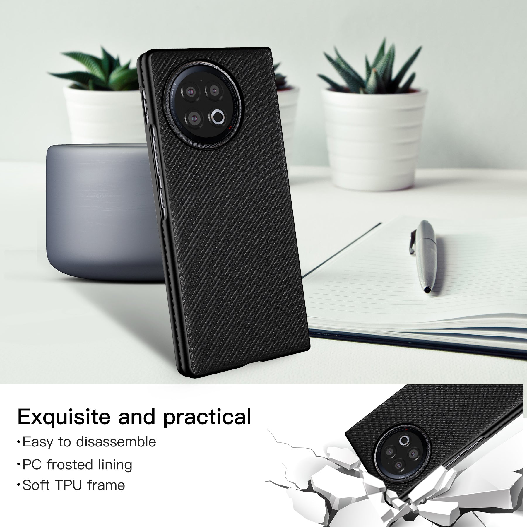 VILI TC Series Shockproof Phone Case for vivo X Fold2 Textured PU Leather Coated PC+TPU Cover