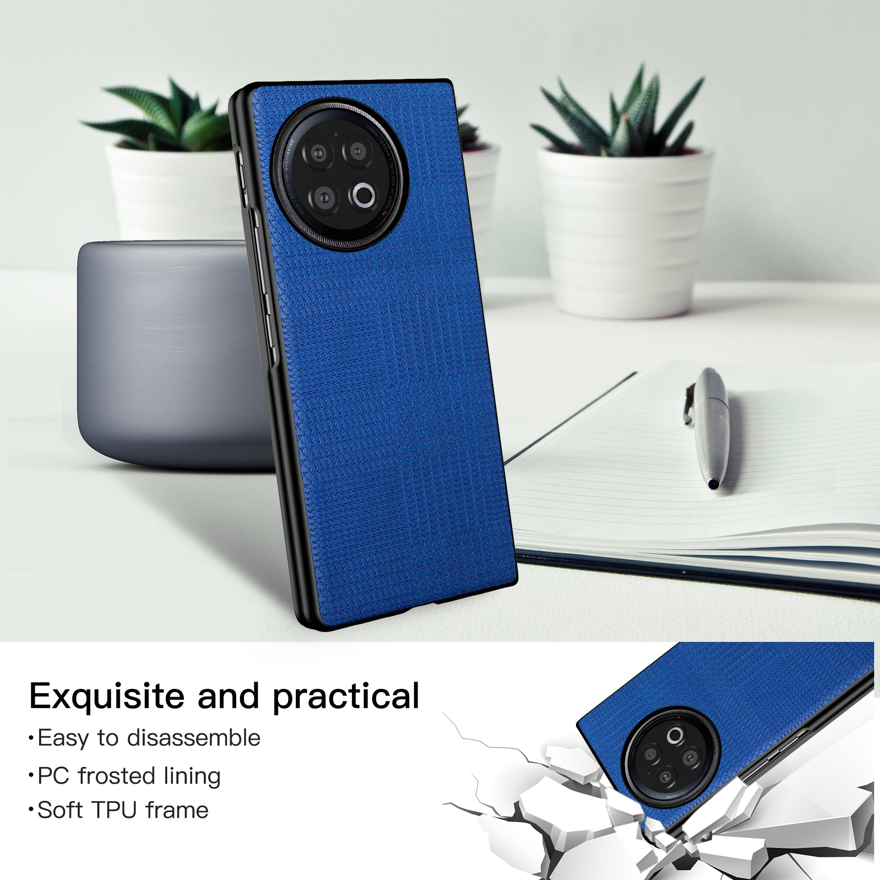 VILI TH Series For vivo X Fold2 Shockproof Case PU Leather Coated PC+TPU Protective Cellphone Cover - Blue
