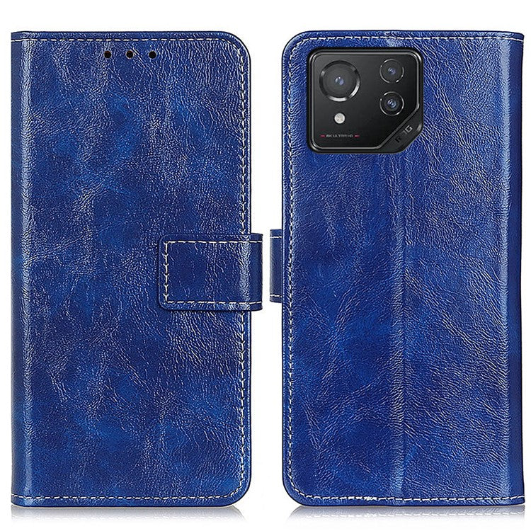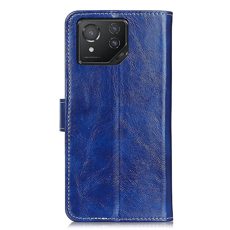 Vintage Case for Asus ROG Phone 8 5G / Phone 8 Pro 5G Shell Crazy Horse Texture Leather Stand Cover - Blue