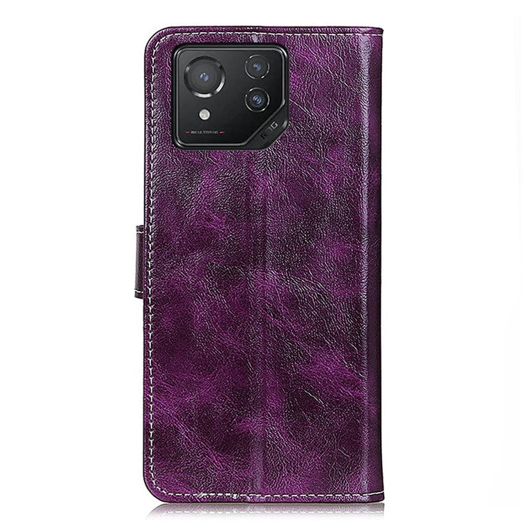 Vintage Case for Asus ROG Phone 8 5G / Phone 8 Pro 5G Shell Crazy Horse Texture Leather Stand Cover - Purple