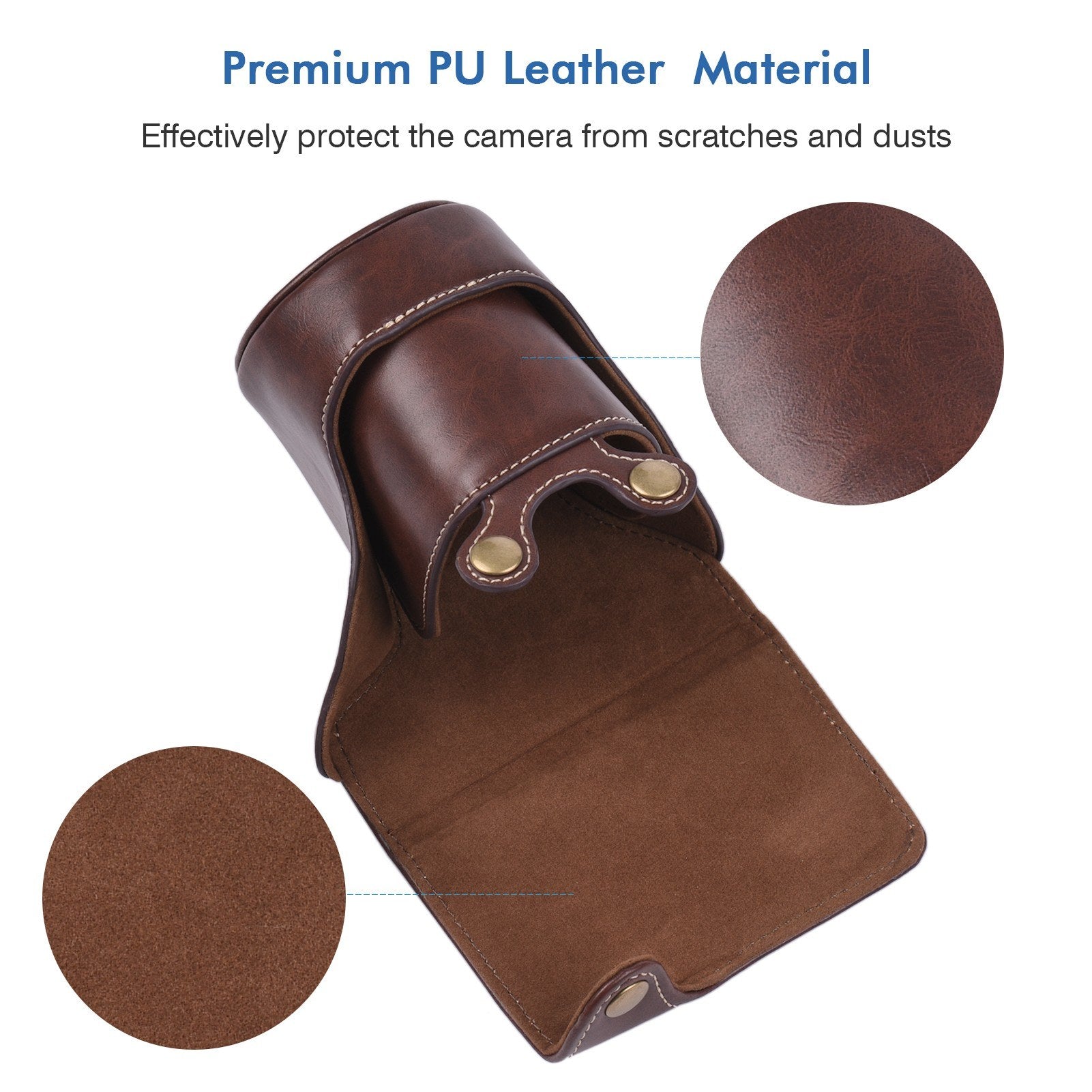 Vintage PU Leather Camera Case Replacement Protective Camera Bag with Strap for Canon EOS M100 - Coffee