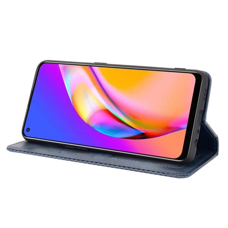 Vintage Style Leather Wallet Case for OPPO A94 4G/F19 Pro 4G/Reno5 F - Blue