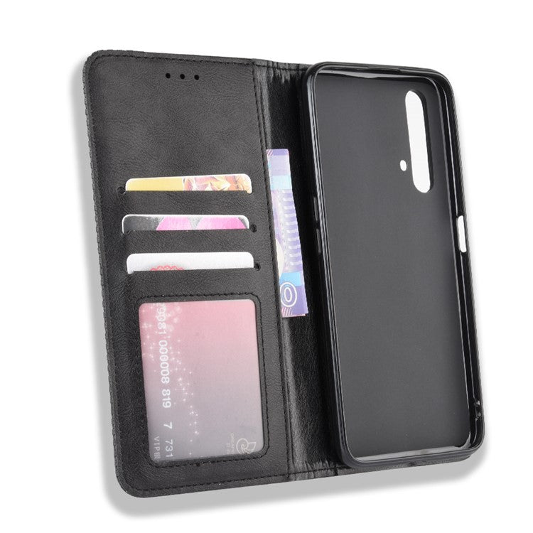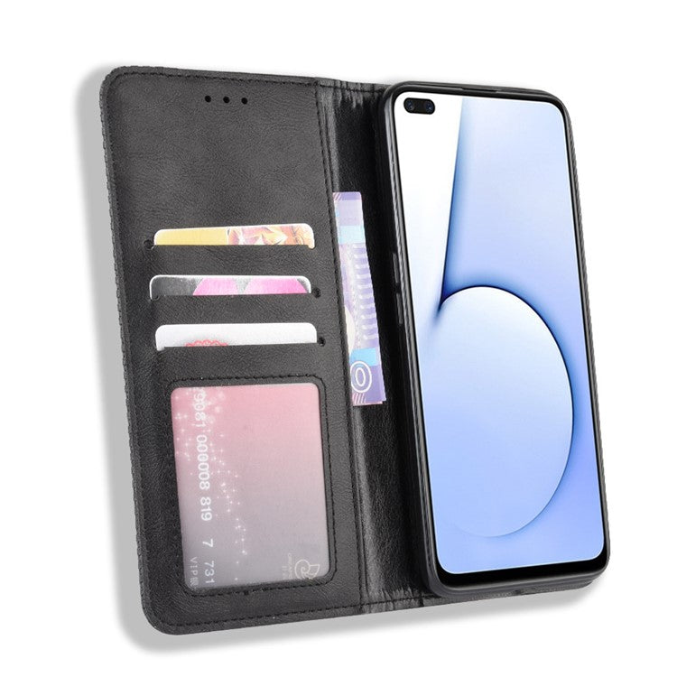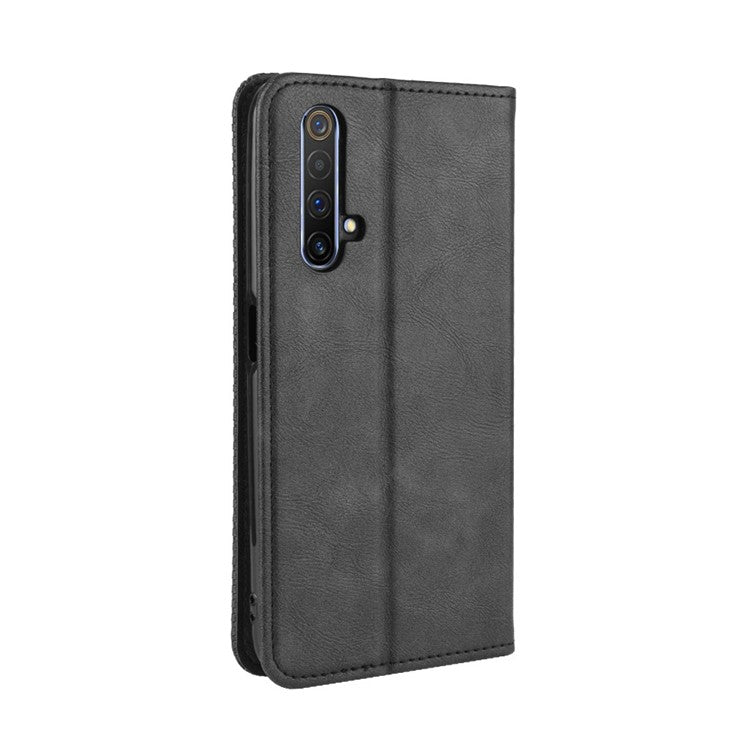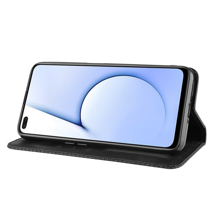 Vintage Style Leather Wallet Case for Realme X50 5G - Black