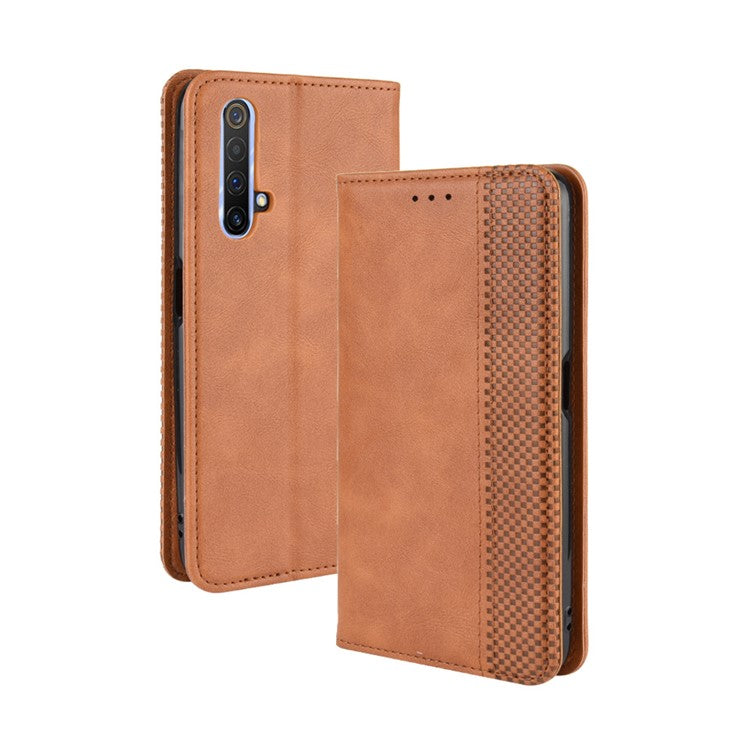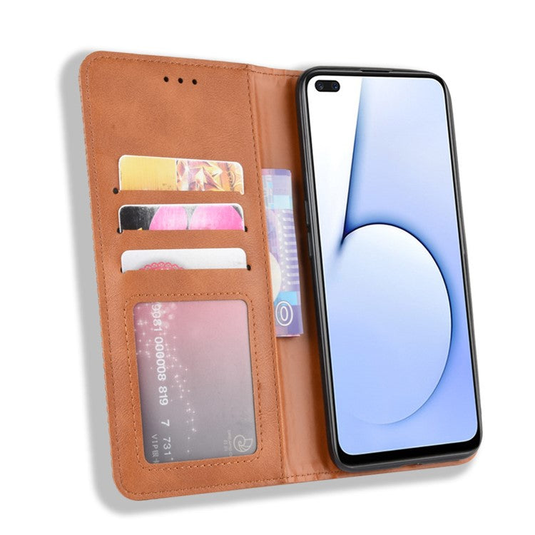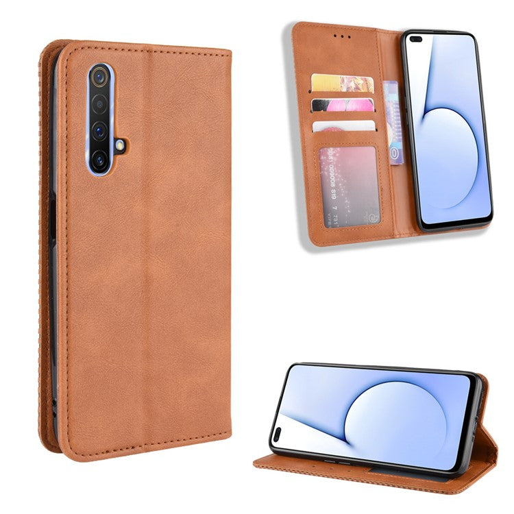 Vintage Style Leather Wallet Case for Realme X50 5G - Brown
