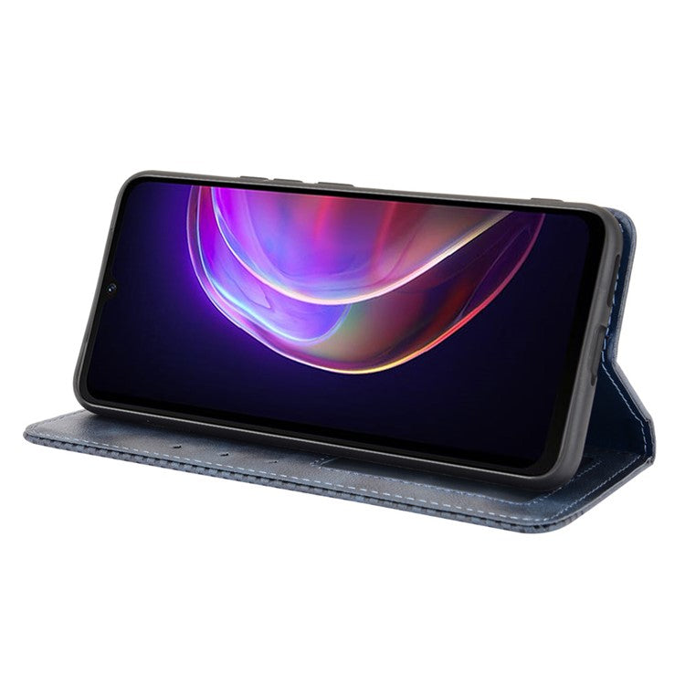 Vintage Style Magnetic Auto-absorbed Full-Protection Wallet Stand Leather Phone Shell Case for vivo V21 4G/5G - Blue