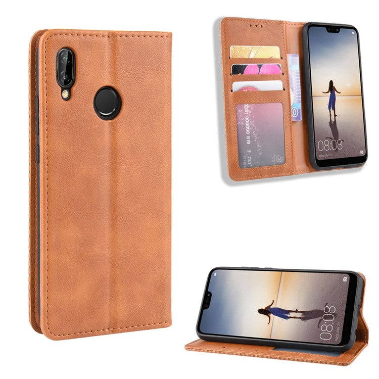 Vintage Style Magnetic Leather Wallet Protective Cell Phone Cover Case for Huawei P20 Lite (2018) / Nova 3e - Brown