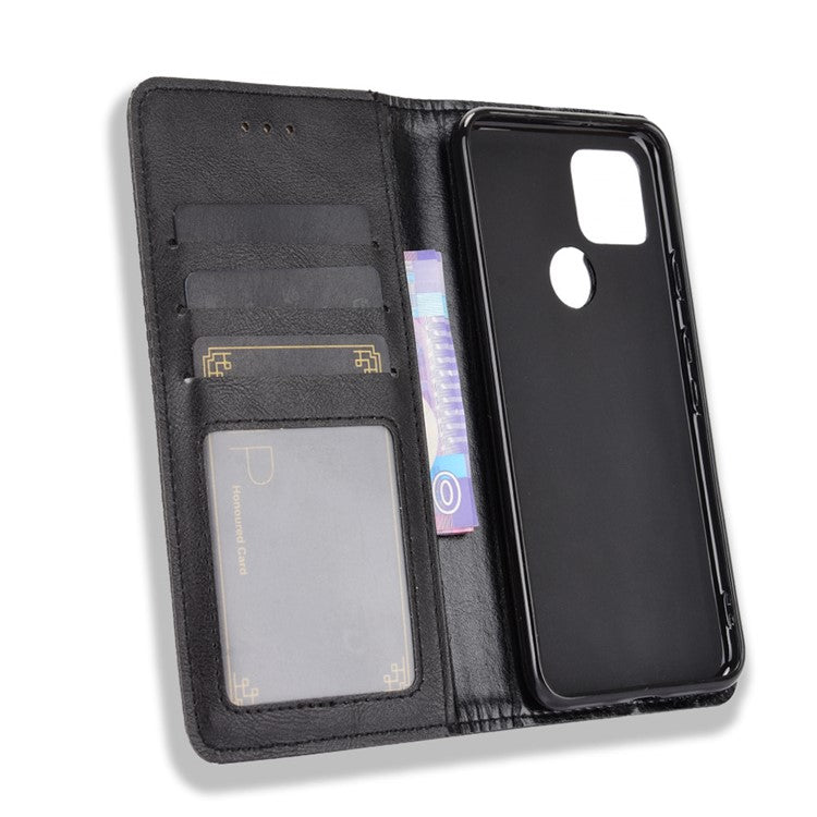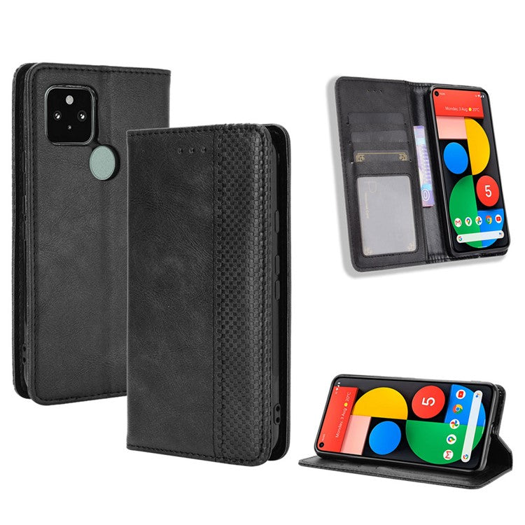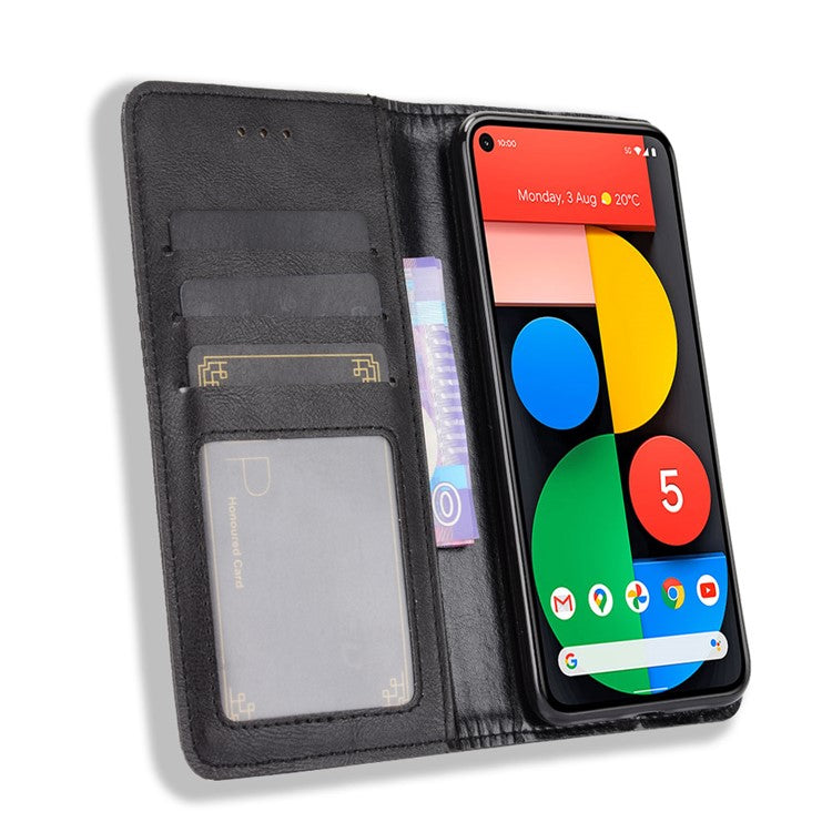 Vintage Style Magnetic PU Leather Cover with Wallet Stand Phone Casing for Google Pixel 5 - Black