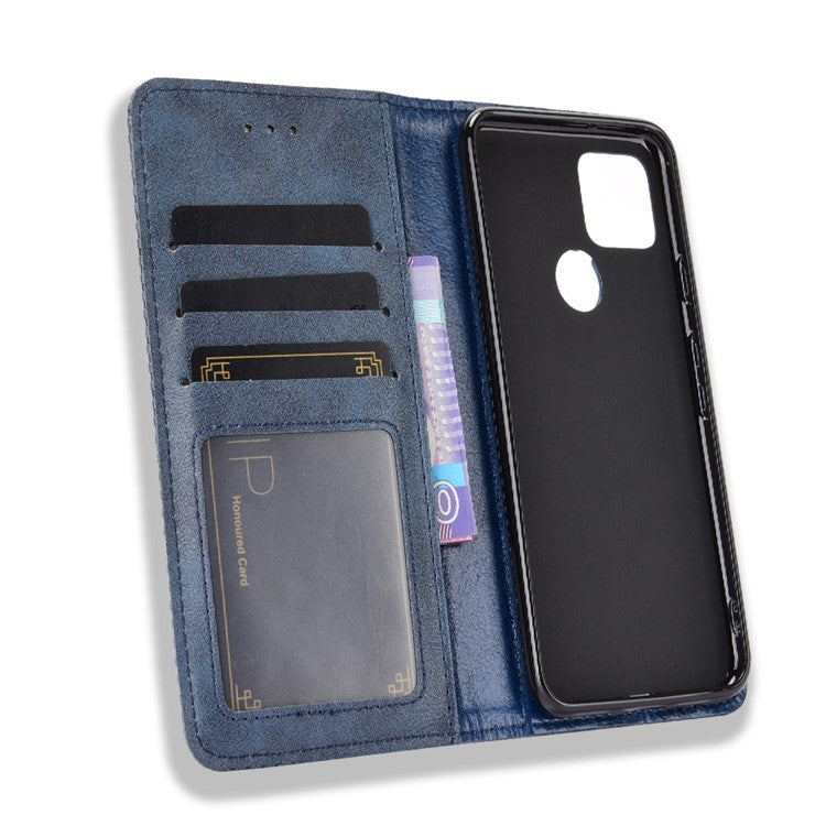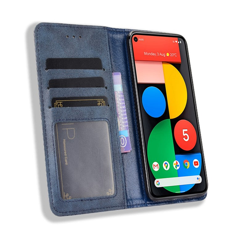 Vintage Style Magnetic PU Leather Cover with Wallet Stand Phone Casing for Google Pixel 5 - Blue