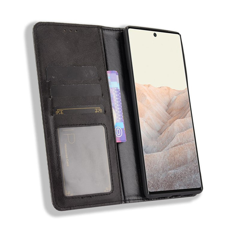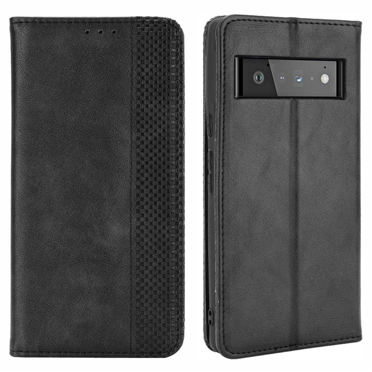 Vintage Style Stand Wallet Leather Cover Phone Case for Google Pixel 6 - Black