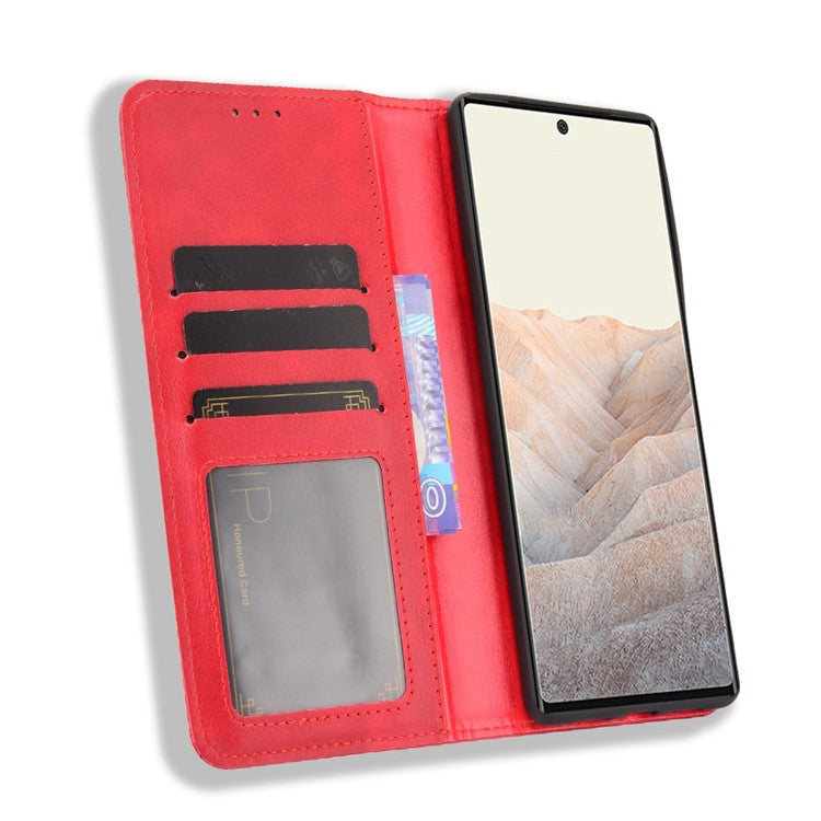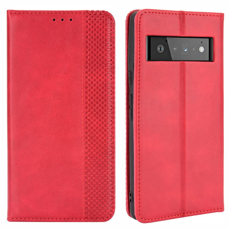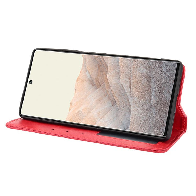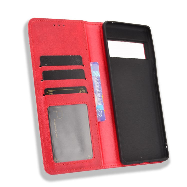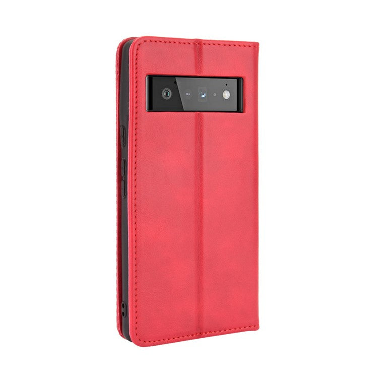 Vintage Style Stand Wallet Leather Cover Phone Case for Google Pixel 6 - Red