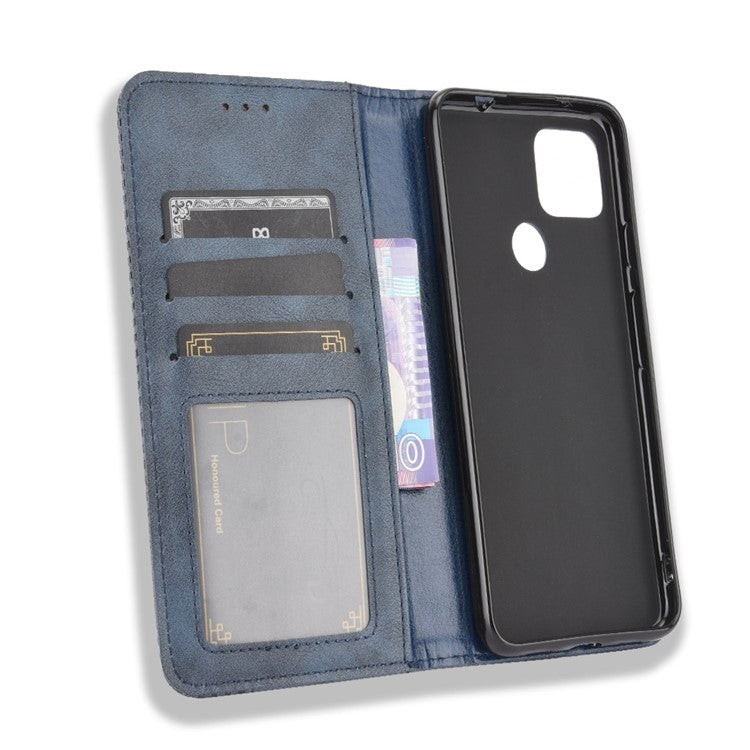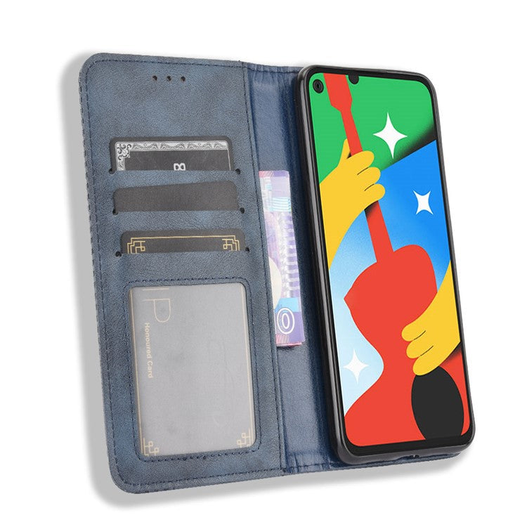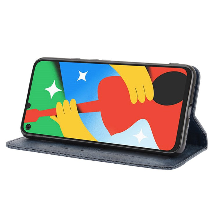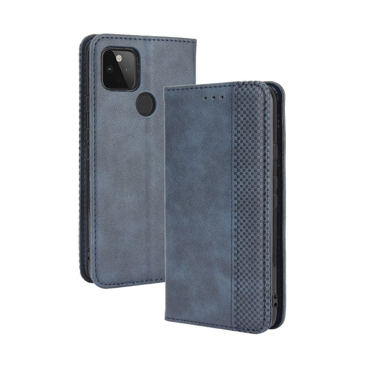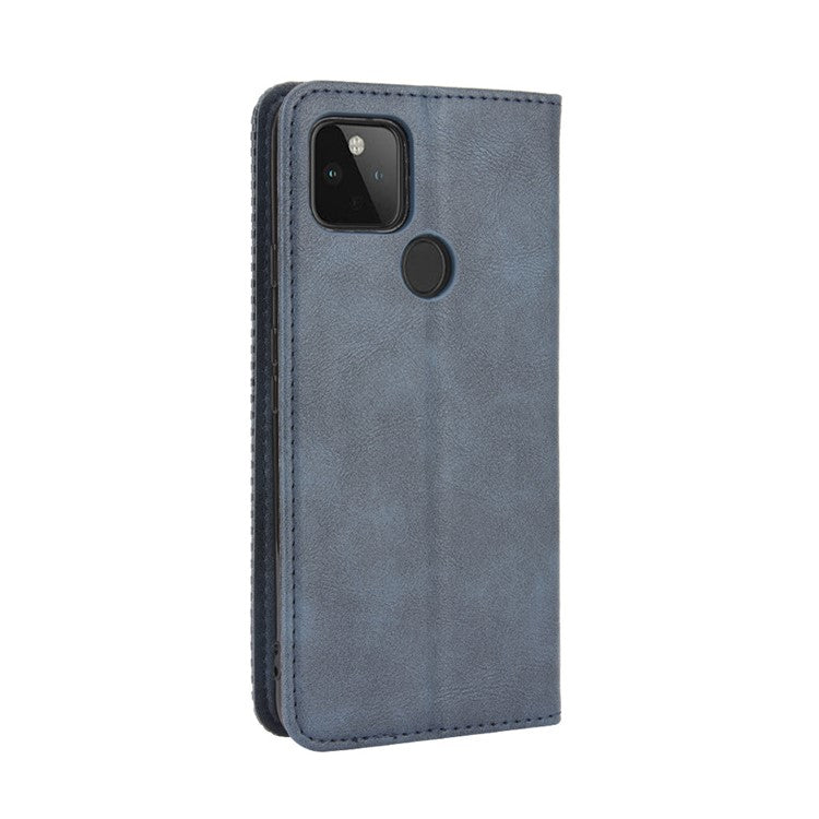 Vintage Style Wallet Stand Leather Phone Cover for Google Pixel 4a 5G - Blue