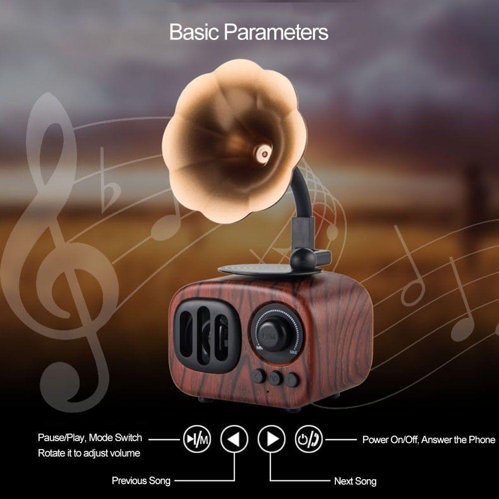 Do you want a multi-functional BT speaker? We are honored to recommend you this one, which is characterized by advanced wireless BT technology and equipped with standard USB port & TF card slot & 3.5mm audio jack. It will provide you perfect stereo sound enjoyment with clear sound quality. And it supports FM radio function too, so that you can know all kinds of the newest news via its FM radio function. Besides, it supports BT hands-free call, which is more convenient for you to answer the phone. Unique and vintage phonograph appearance design, this speaker not only provides you great music enjoyment but also visual enjoyment, don't miss it!