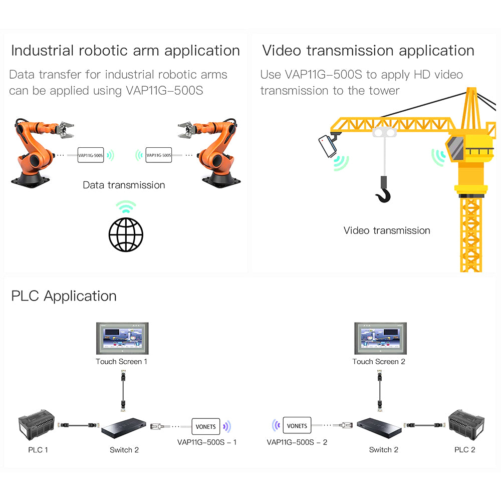 - [Advantages and Applications] 2.4GHz high-power equipment is more suitable for industrial applications. Long transmission distance, which can be used for small data and video transmission. Ideal for network/medical/IoT devices, network printers, PLCs, robots, displays, IP cameras, POS registers, PS3, and more