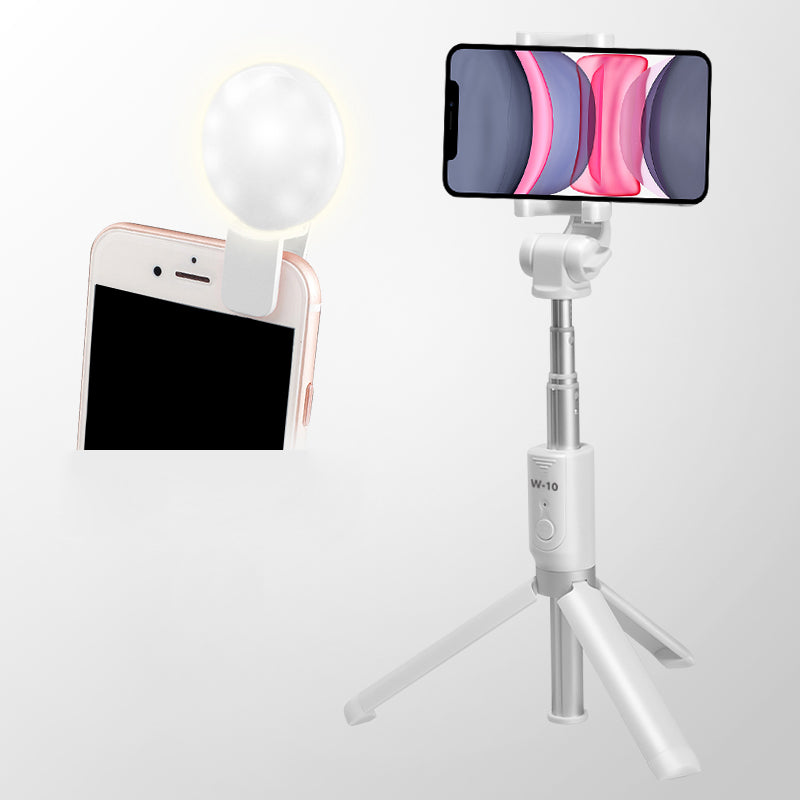 W-10 Bluetooth Multifunctional Selfie Stick Live Streaming Hidden Telescopic Tripod with Fill Light - White