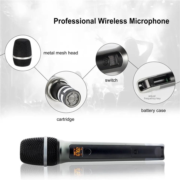 W-17 Dynamic Wireless Microphone 1 to 2 All-Metal UHF FM Handheld Microphone for Conference, Stage