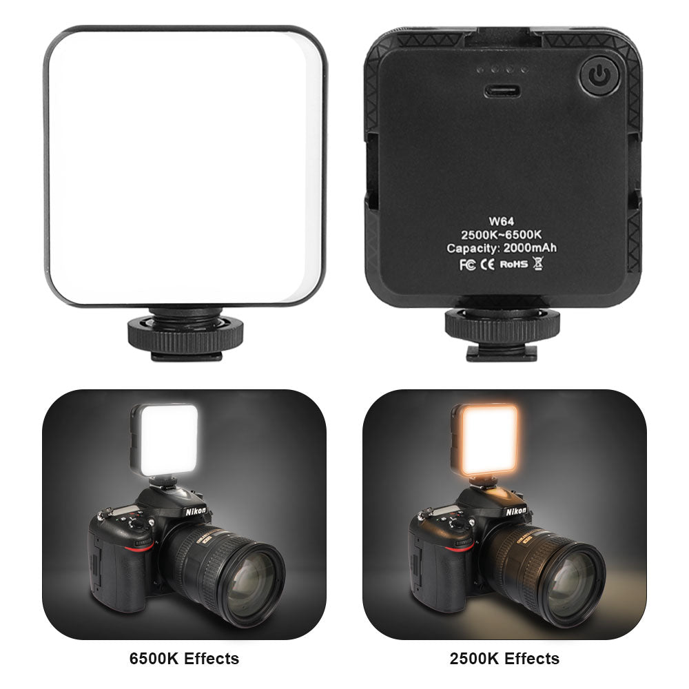 High Brightness & High CRI: Mini LED video light with 64pcs LED beads, 6W power output and 90+ color rendering index, high brightness and high sensitive color reaction