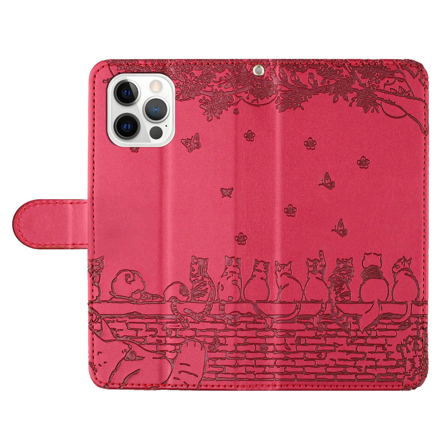 Wall Cats Imprinted PU Leather Case for iPhone 15 Pro , Stand Wallet Phone Cover with Strap - Red
