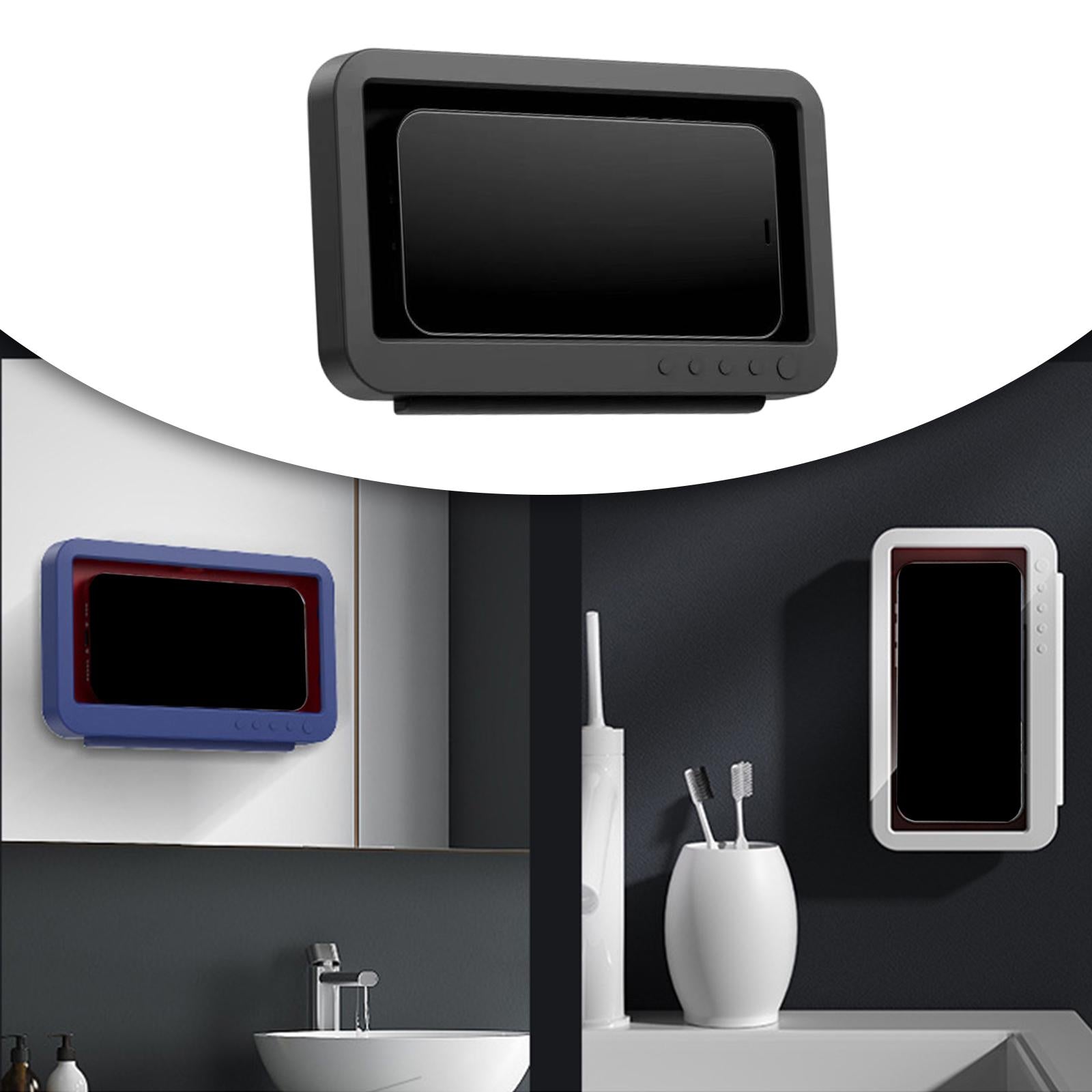 Wall Mounted Shower Phone Holder Waterproof Phone Storage Case Punch Free Black