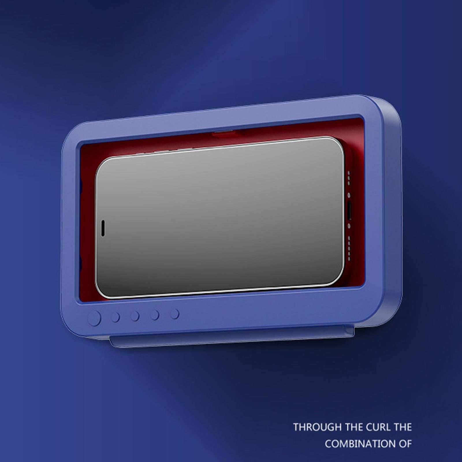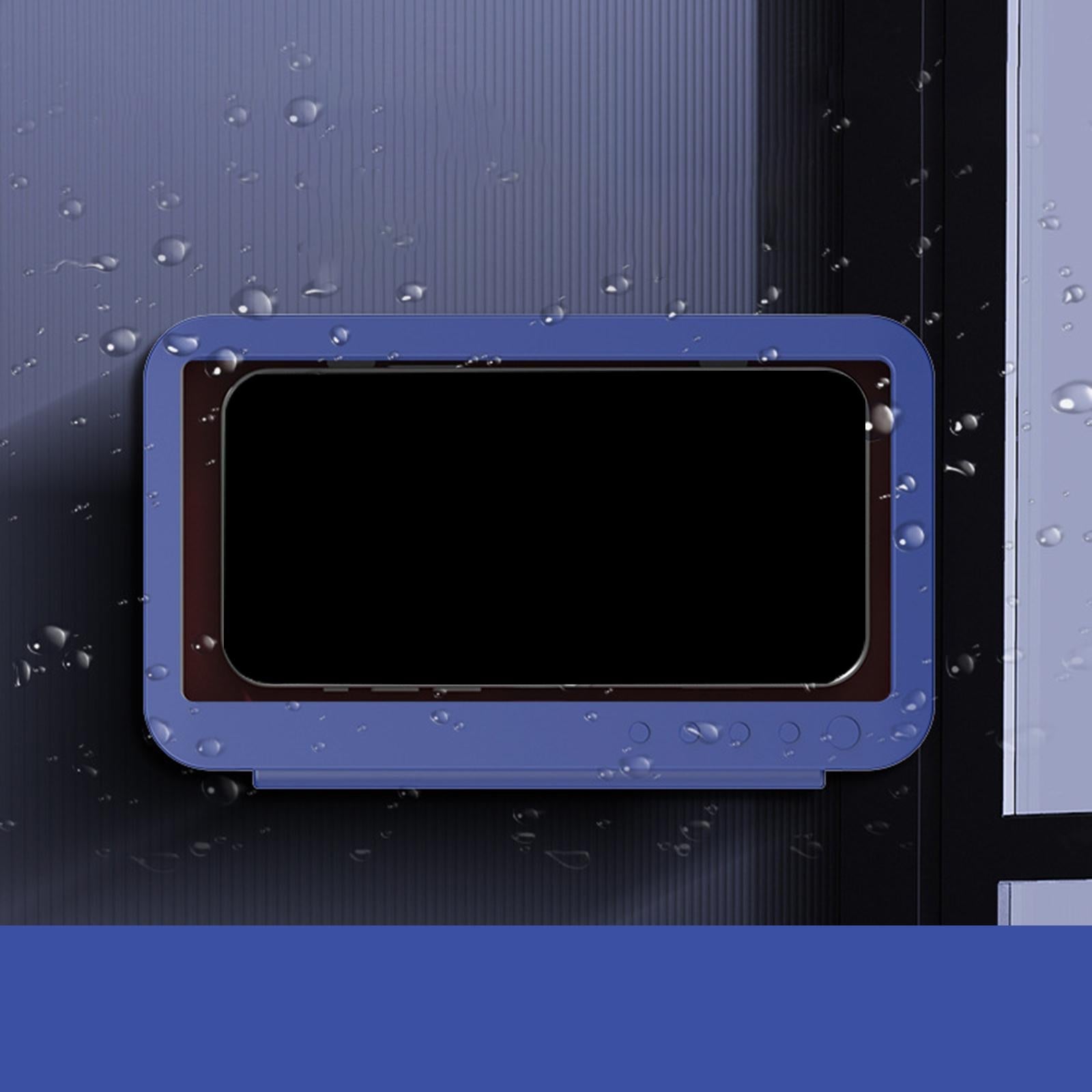 Wall Mounted Shower Phone Holder Waterproof Phone Storage Case Punch Free Blue