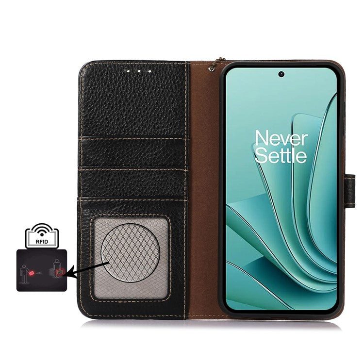 Wallet Case for OnePlus Ace 2V / Nord 3 5G , RFID Blocking Genuine Cow Leather Stand Phone Cover - Black