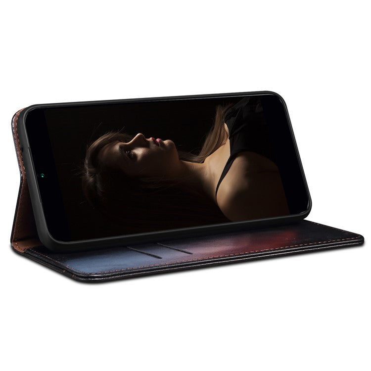 Wallet Case for vivo Y78 (China) 5G / Y36 4G (Global) / Y36 5G (Global) PU Leather Waxy Crazy Horse Texture Stand Phone Cover - Black