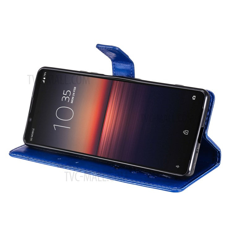 Wallet Design KT Imprinting Flower Series-2 Butterflies Pattern Imprinting Leather Case with Stand for Sony Xperia 1 III 5G - Blue