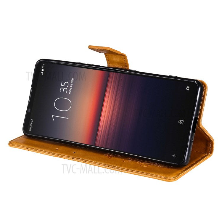 Wallet Design KT Imprinting Flower Series-2 Butterflies Pattern Imprinting Leather Case with Stand for Sony Xperia 1 III 5G - Yellow