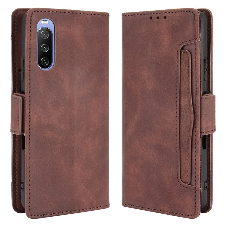 Wallet Design Multiple Card Slots Stand Leather Phone Case for Sony Xperia 10 III 5G / Xperia 10 III Lite - Brown